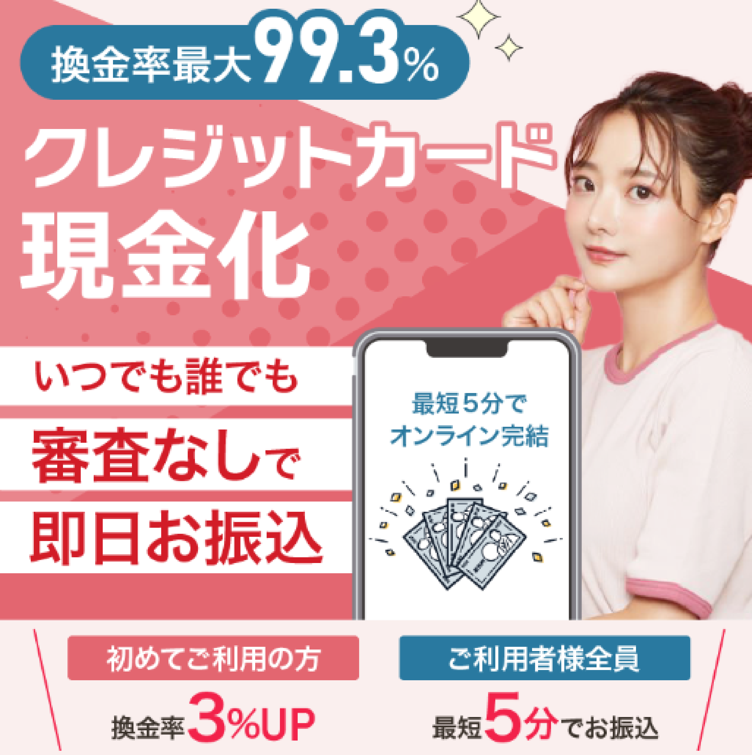 以前は他の業者を利用していましたが、評判が良さそうだったので申込みました。他社からの乗り換えは換金率をアップしてくれるとのことで、お得に現金化できて嬉しかった。