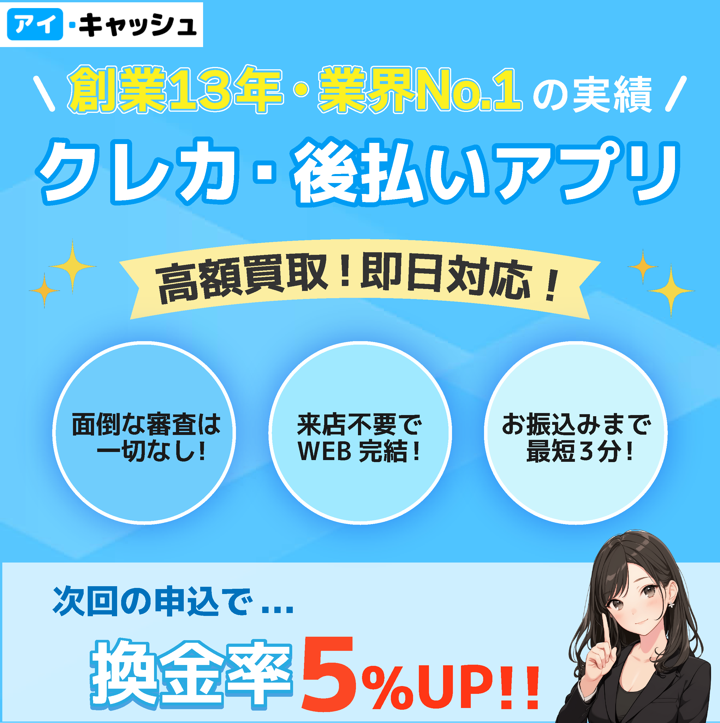 以前は他の業者を利用していましたが、評判が良さそうだったので申込みました。他社からの乗り換えは換金率をアップしてくれるとのことで、お得に現金化できて嬉しかった。
